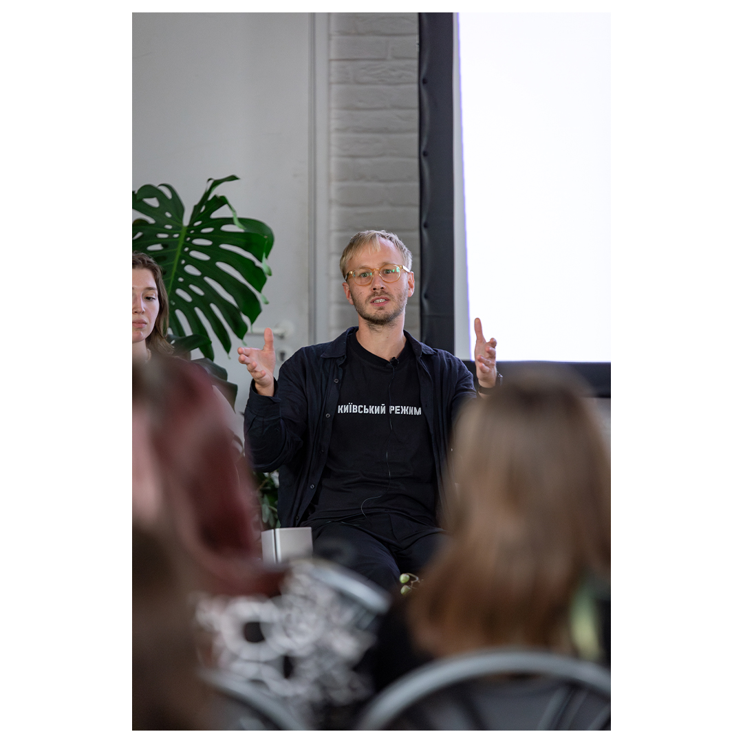 Dinara Khalilova, Igor Chekachkov, and Sashko Protyah, in conversation with Mariia Pastukh and Valentin Rajenkov